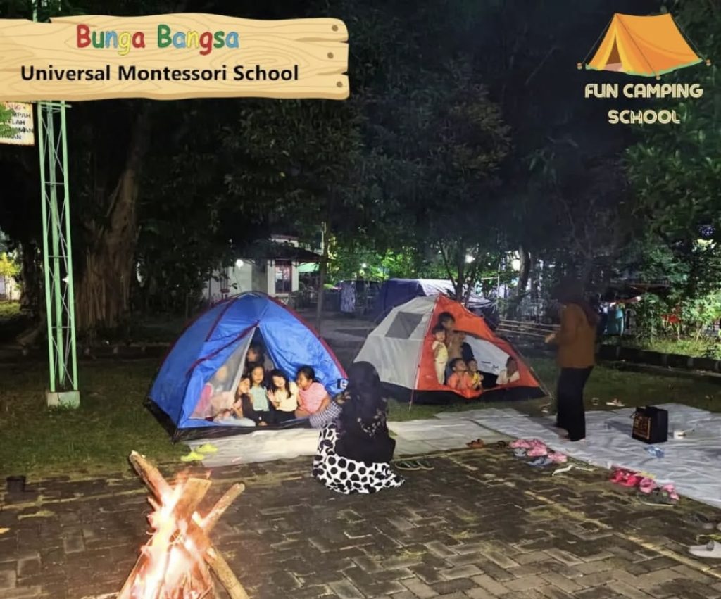 Bunga Bangsa Universal School baru-baru ini menyelenggarakan kegiatan Fun Camping Class yang penuh petualangan di lingkungan sekolah. Anak-anak diajak merasakan serunya berkemah dengan mendirikan tenda mini, bermain game edukatif di area terbuka, dan menikmati cerita bersama di bawah bintang-bintang (atau langit-langit, jika di dalam ruangan).